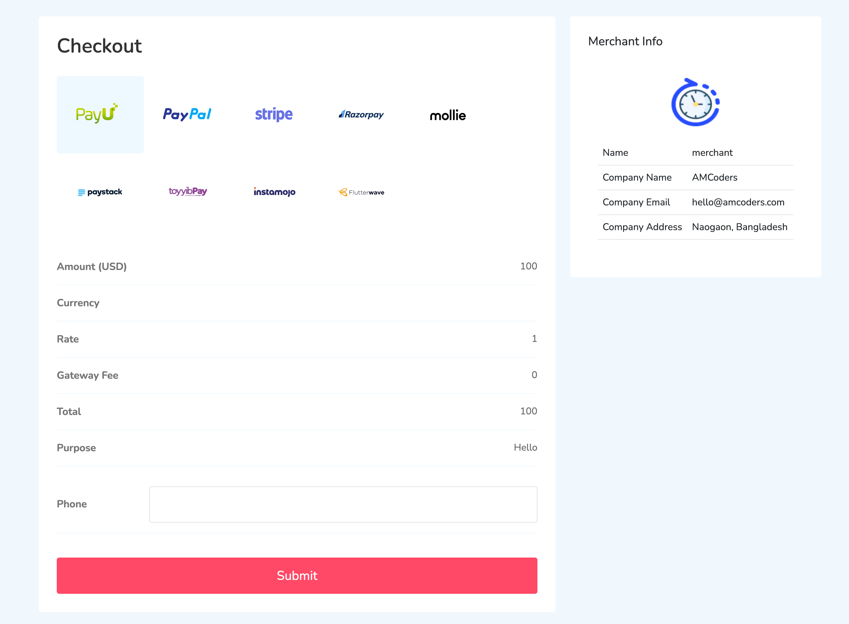 In body add private_key,currency,is_fallback,url,is_test,amount as key and their values from the credentials of merchant profile.